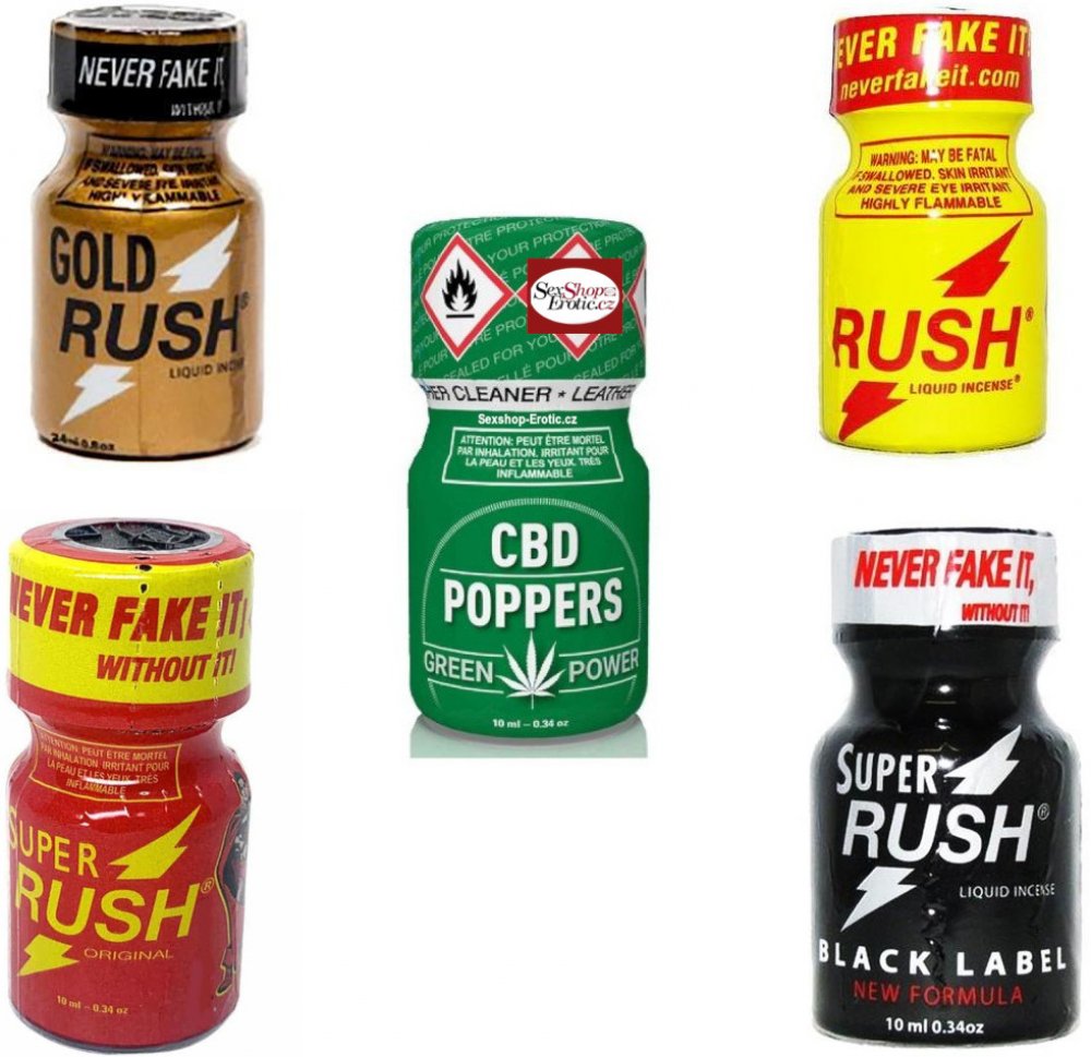 Kupte 5 kusů a ušetřete! Určitě chcete vyzkoušet účinky různých druhů. Přinášíme vám akční balíček pěti kvalitních značkových poppersů známého výrobce Rush. Originál, Gold, Super Black, Super originál, CBD Green Power. Připravili jsme pro vás zajímavý Poppers akční set, který obsahuje pět kvalitních produktů známé značky RUSH, vyzkoušejte, který je pro vás ten nejlepší. Běžná cena 870 Kč, akční cena jen 769 Kč. Ušetříte až 101 Kč! Kupte a ušetřete! AKCE! Pokud chcete ušetřit! Pořiďte si tento akční set malého Poppers Rush za výhodnou cenu! Neslouží k přímé inhalaci! Výrobky poppers se prodávají výhradně za účelem použití způsobem uvedeným na obalu a v příbalovém letáku výrobku. Jakýkoliv jiný způsob užití výrobku je zakázán a zákazník uzavřením kupní smlouvy souhlasí s příslušným článkem VOP upravujícím prodej výrobků Poppers. Produkty Poppers jsou legálně volně prodejné osobám starším 18 let