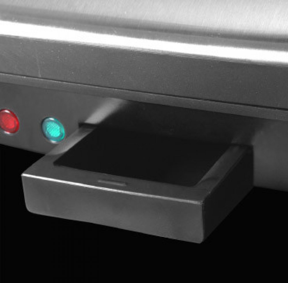 - Zabudovaný tácek pro odtékání přebytečného tuku v obou pozicích grilu