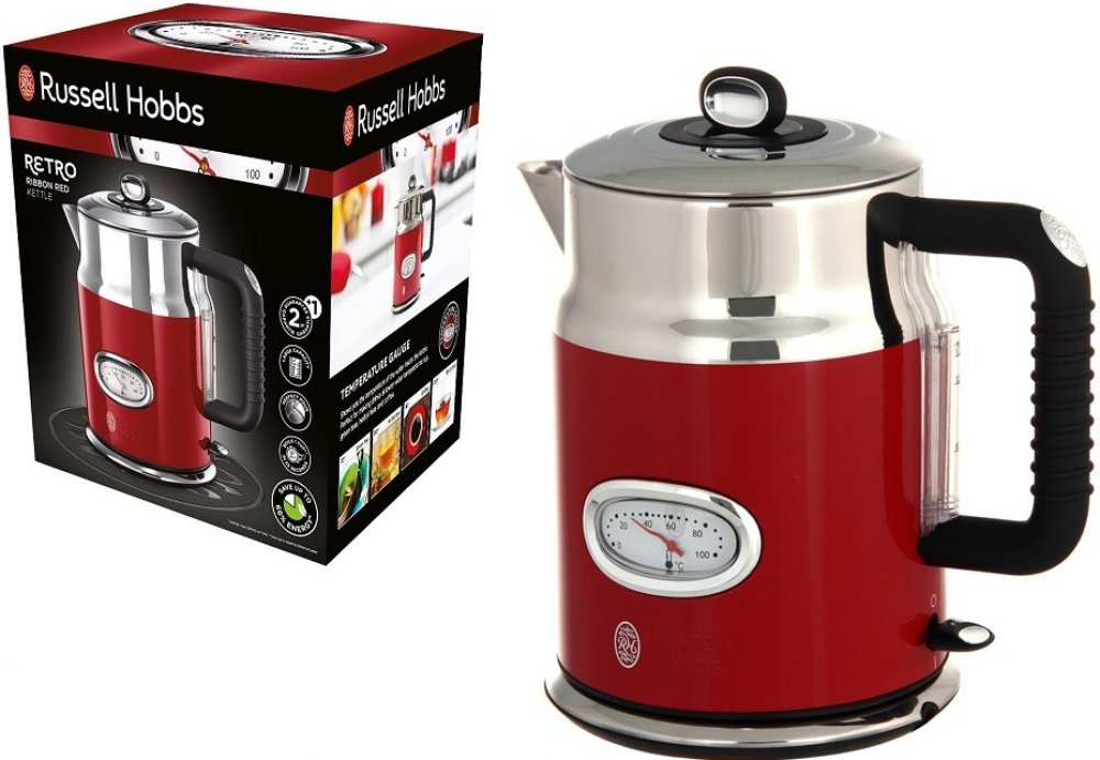Elegantní design rychlovarné konvice Retro Classic Red od značky Russell Hobbs je spojený s moderními vlastnostmi a stejně tak na první pohled lahodí oku.