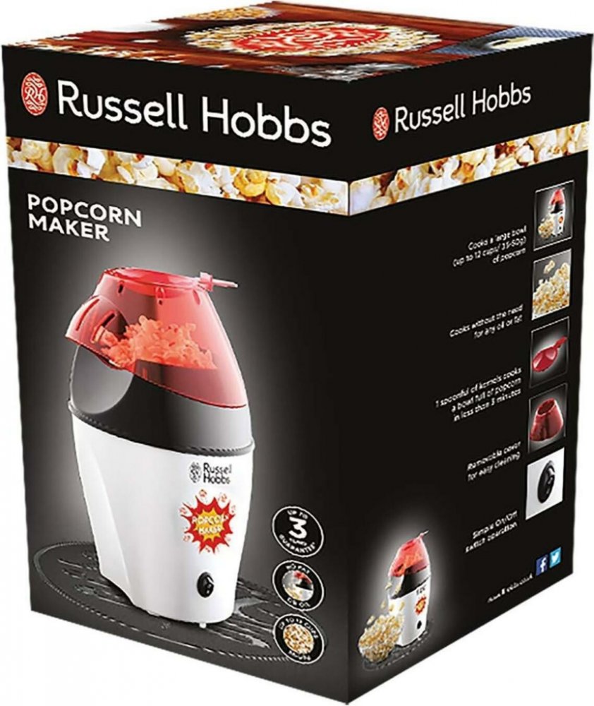 Popkornovač, kapacita 12 velkých šálků, cirkulace horkého vzduchu - není třeba použít tuk či olej.