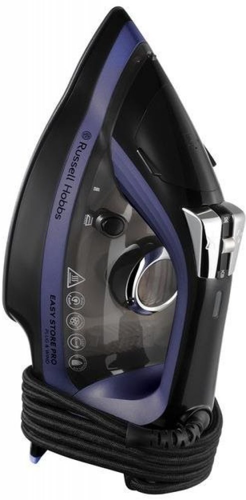 Žehlička Plug and Wind je vybavena integrovaným držákem, který umožňuje omotat kabel kolem základny žehličky a koncovku bezpečně zacvaknout do integrovaného držáku. Kabel zůstane na svém místě, což vám usnadní skladování žehličky. Žehlička Easy Store Pro Plug and Wind od Russell Hobbs má velkorysou nádržku na vodu s kapacitou 320 ml. Poskytne vám příkon 2400 W, parní ráz 200 g a nepřetržitý výstup páry 50 g, což zaručuje perfektní výkon. Ideální pomocník pro případy, kdy potřebujete vyžehlit opravdu pomačkané prádlo. Nechce se vám každých pár minut dolévat vodu? Nádržku na vodu o objemu 320 ml je třeba doplňovat méně často, díky tomu můžete žehlit o to rychleji. Praktická funkce vertikálního napařování vám umožní vypořádat se s pomačkanými oděvy na ramínku nebo vyhladit zavěšené látky, například závěsy.