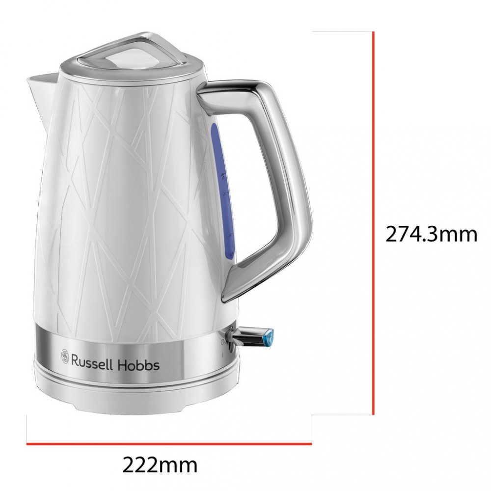 Varná konvice Structure White Russell Hobbs 28080-70 Vychutnejte si každé ráno Váš oblíbený šálek kávy či čaje s pomocí netradiční rychlovarné konvice 28080-70 Structure White Russell Hobbs. Její zajímavý bílý texturovaný design s nerezovými prvky Vám zpříjemní každé ráno přípravu Vaší snídaně. Modré podsvícení je nejen stylové, ale také Vám dá vědět, že je konvice zapnutá. Tato varná konvice je n...