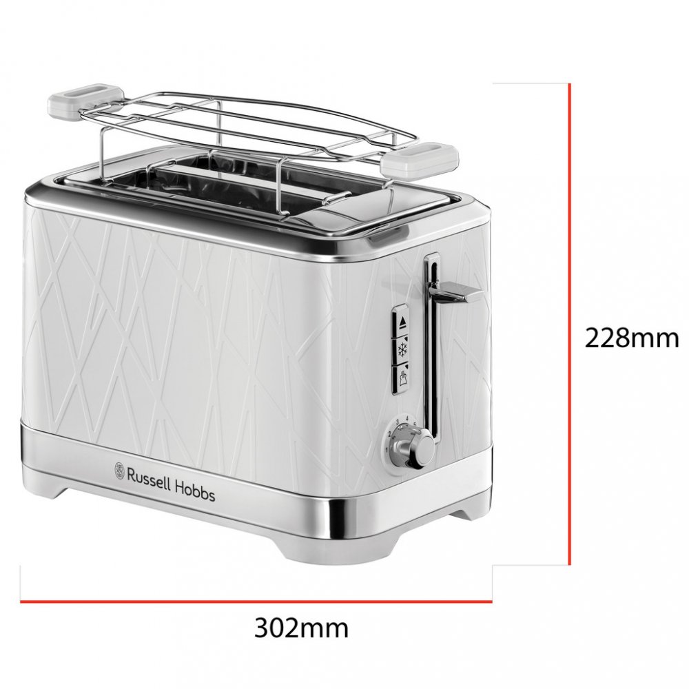 Topinkovač Structure White Russell Hobbs 28090-56 Vychutnejte si každé ráno Vaše oblíbené tousty s pomocí stylového topinkovače 28090-56 Structure White Russell Hobbs. Jeho zajímavý bílý texturovaný design s nerezovými prvky Vám zpříjemní každé ráno přípravu Vaší snídaně. Je nejen designovým kouskem, ale také skvělým pomocníkem se spoustou praktických funkcí. Umožní Vám nejen opékat tousty, ale i rozmrazit jiné pečivo. Novinka pro jaro 2021 na muj-russellhobbs.cz Funkce vysokého vysunutí pečiva Pomocí páčky svůj oblíbený toust snadno vyzvednete nahoru a vyjmete ven, aniž byste si spálili prsty. Funkce rozmrazování Topinkovač Russell Hobbs 28090-56 je také opatřen funkcí rozmrazování, díky které můžete rozmrazit pečivo vyndané přímo z mrazáku. Topinkovač je i opatřen mřížkou pro rozehřívání pečiva, takže bude Vaše pečivo vždy krásně křupavé a teplé. Specifikace topinkovače Prémiový texturovaný plast s nerezovými prvky Funkce přerušení Funkce rozpékání Funkce vysokého vysunutí pečiva 2 přihrádky Odnímatelný tác na drobky Nastavení stupně opečení Mřížka na pečivo 860 W Objednávejte pod kat. číslem 28090-56