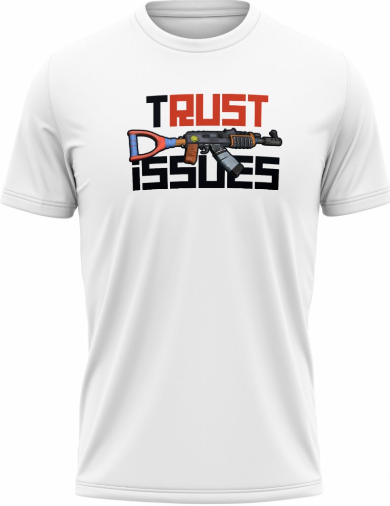 Přidejte si do své kolekce oblečení také parádní tričko Trust Issues z online hry Rust.