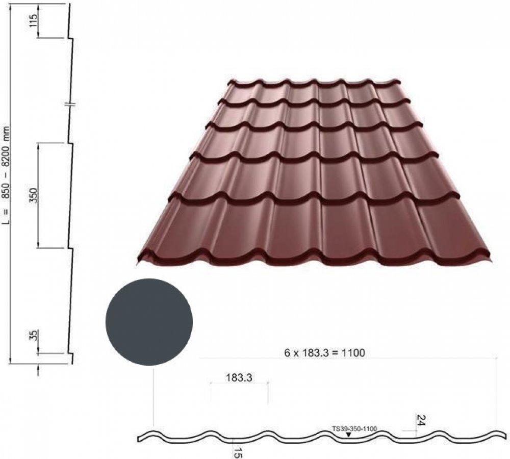 Střešní krytina Monterrey Plus je charakteristická moderní, lehce strukturovanou matnou konečnou povrchovou úpravou. Jedná se o stylovou střešní krytinu, která nejen krásně vypadá, ale také spolehlivě odolá nástrahám času. Technické údajeCelková výška: 39 mmDélka vzoru: 350 mmEfektivní šířka: 1100 mmCelková šířka: 1181 mmMaximální délka: 8200 mmMinimální délka: 850 mmTloušťka materiálu: 0,5 mmHmot...
