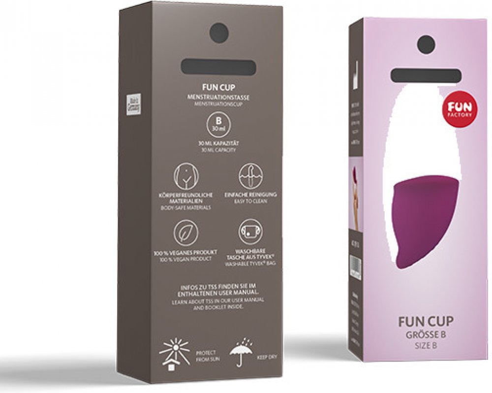 Fun Cup je menstruační kalíšek vyrobený z lékařského hypoalergenního silikonu, který má originální zakřivení pro pohodlnou a dlouhodobou ochranu. Zatímco tampony vysušují sliznici a způsobují mikrooděrky (čímž se poševní prostředí stává náchylnější k infekci), silikonový kalíšek je zdravotně nezávadný, ekologický a hlavně velmi pohodlný. Je dokonce vhodný i pro sexuální předehru - s neviditelnou zúženou špičkou a tvarem, který ponechává prostor pro lehčí dráždění prsty.