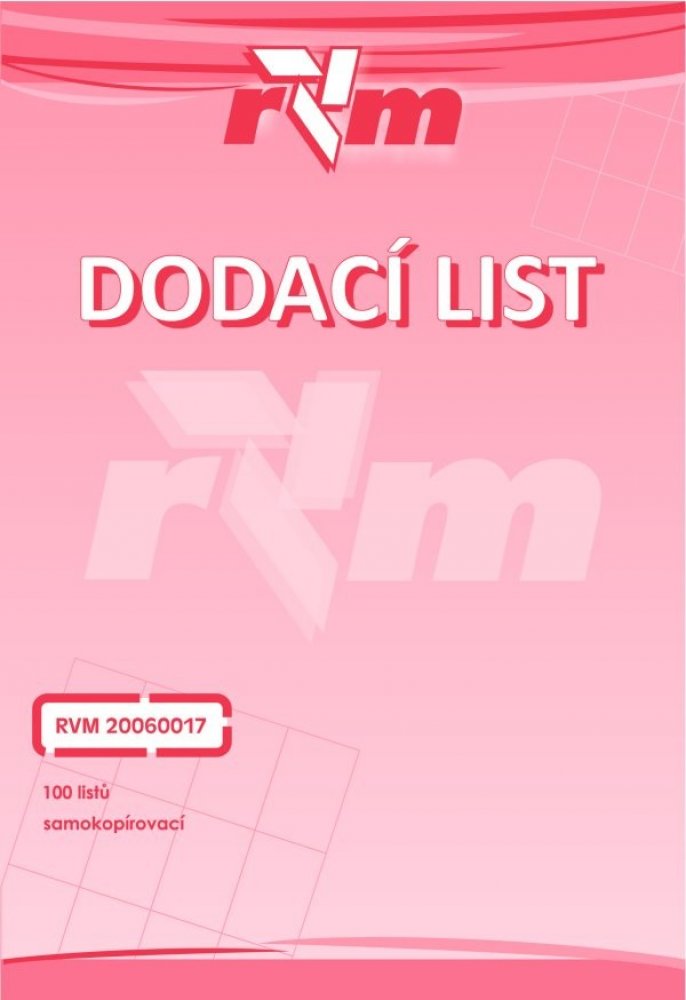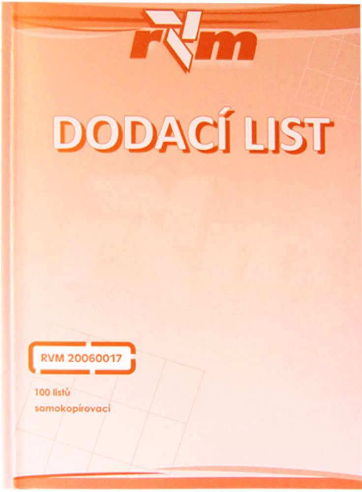 Dodací list. Samopropisovací tiskopis. Blok obsahuje 100 listů . Oranžová obálka. Nečíslovaný. Formát A5 na výšku. Tiskopis lze použít jako daňový doklad, prodejku za hotové, s rozpisem a tabulkou DPH. Od 1.1.2010 posíláme repliku od výrobce RVM Opava.