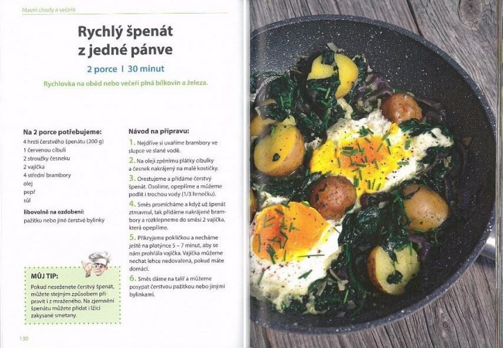 Všechny recepty jsou přesto chutné a se snadnou přípravou. Většinu receptů zvládnete připravit za 30 minut a nemusíte tak trávit v kuchyni dlouhé hodiny. Vybrat si můžete ze sladkých snídaní i svačinek, hlavních jídel s masem i těch bezmasých vhodných pro vegetariány. Snadno také připravíte krémové polévky a pochutnáte si na zdravějších dezertech dochucených medem nebo ovocem.