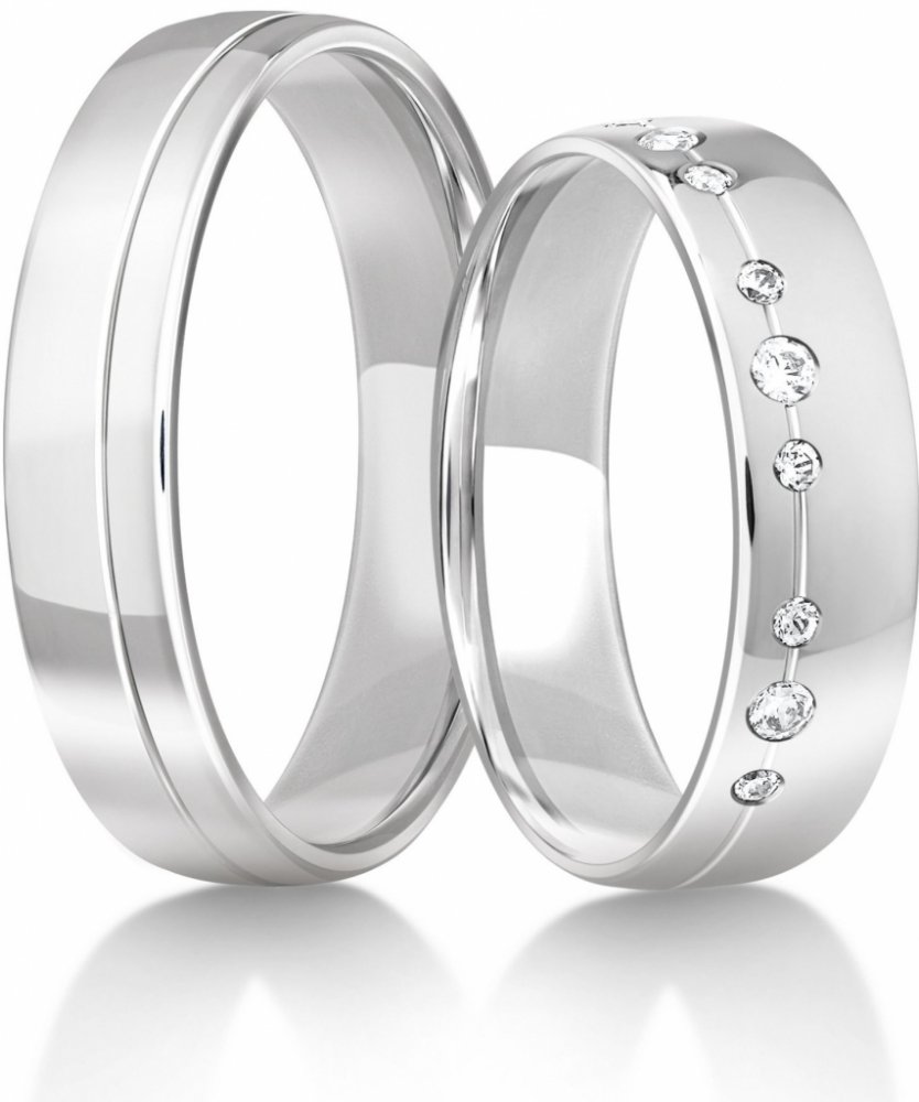 Uvedená cena za pár (orientačně) - dámský snubní prsten se zirkony bílé zlato 52 + pánský snubní prsten bílé zlato 62