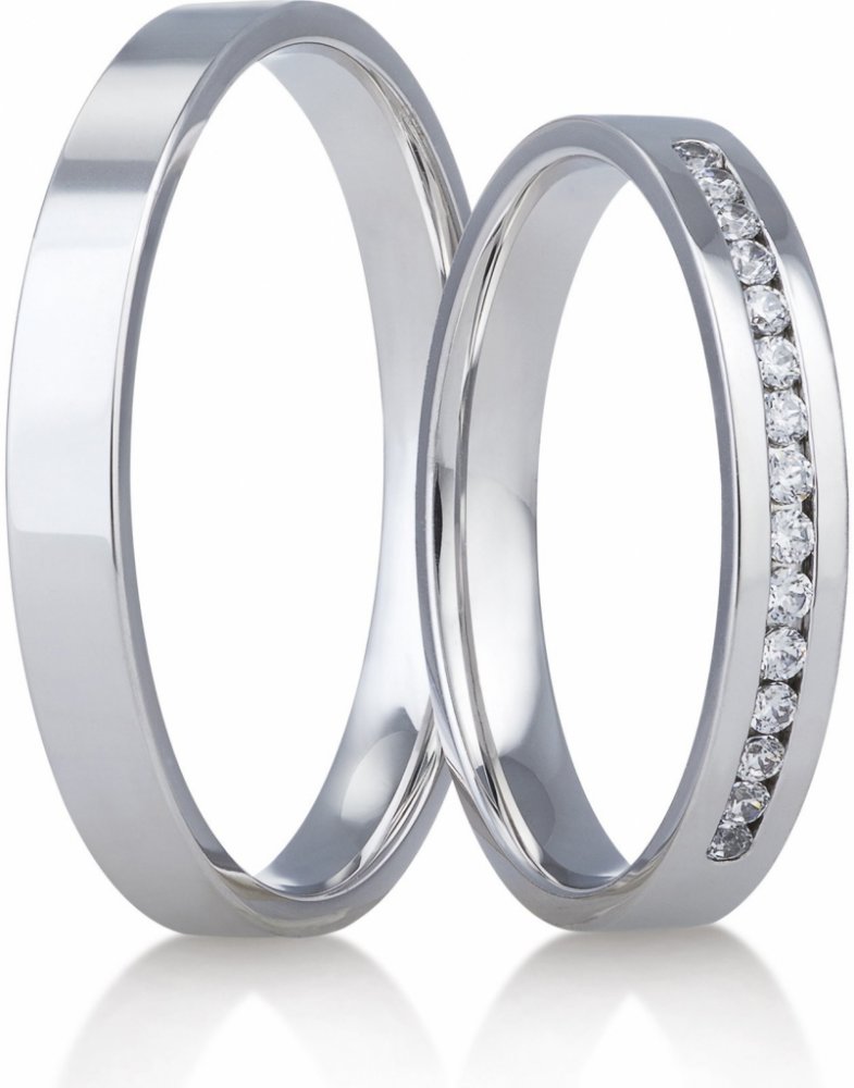 Uvedená cena za pár (orientačně) - dámský snubní prsten s brilianty bílé zlato 52 + pánský snubní prsten bílé zlato 62