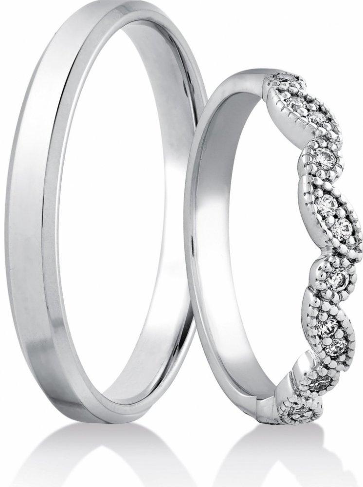Uvedená cena za pár (orientačně) - dámský snubní prsten s brilianty bílé zlato 52 + pánský snubní prsten bílé zlato 62