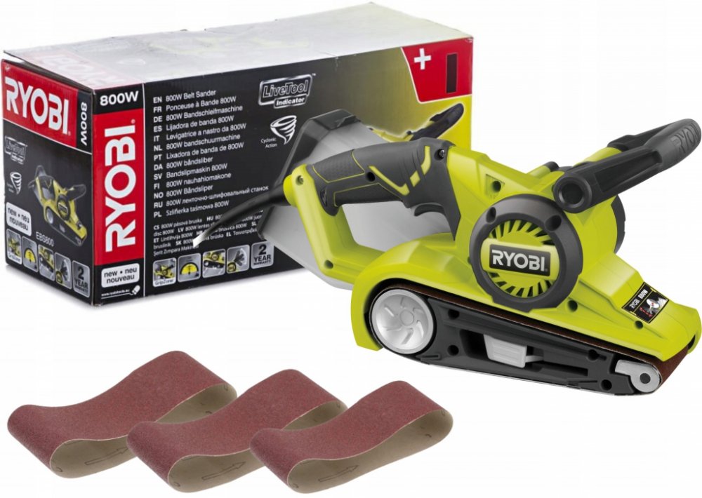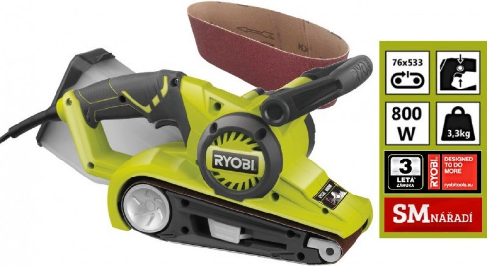 800 W 76 mm 3.3 kg Ryobi pásové 76 x 150 mm 76 mm 800 W 230 V elektrické pro obecnou přípravu povrchu pro mobilní úlohy rychloupínání se středním komfortem