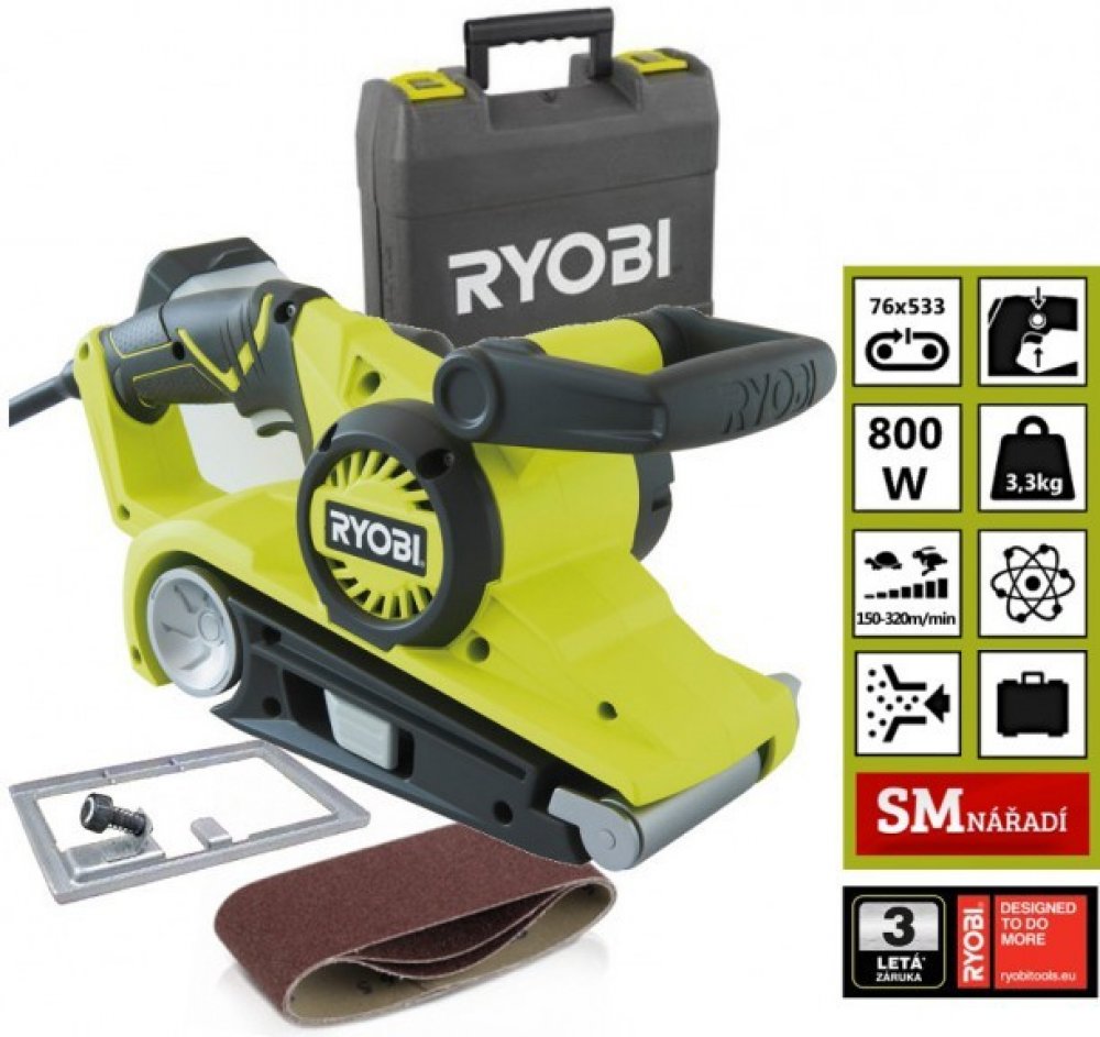 800 W 76 mm 3.3 kg Ryobi pásové 76 x 150 mm 76 mm 800 W 230 V elektrické pro obecnou přípravu povrchu pro mobilní úlohy rychloupínání se středním komfortem