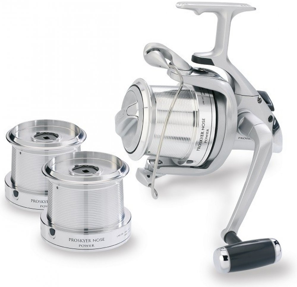 Rybářský naviják RYOBI PROSKYER NOSE je koncipován pro daleké hody k lovu kaprů. Precizní převody zajišťují , i při zdvihu cívky 40mm, rovnoměrné křížové navíjení na konickou cívku. System TANGLE GUARD zabraňuje zachycení vlasce pod cívku ve všech pozicích. Vlasec se na cívku upevňuje prostrčením skrze otvor umístěný pod cívkou a nedochází tím, pro jinak nutný uzel, ke snížení kvality nahazování.