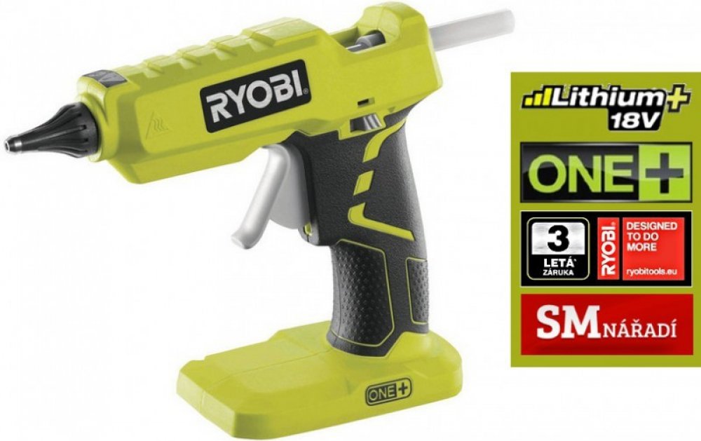 Aku lepicí tavná pistole Ryobi R18GLU je vhodná pro použití na nejrůznější materiály. Pogumovaná rukojeť poskytuje optimální oporu při práci. Lepicí tavná pistole od značky Ryobi je vhodná pro všechny běžné lepicí tyčinky o průměru 11 mm. Je napájena akumulátorem, a proto se skvěle hodí pro ruční práce a do vaší domácí dílny. Přináší vysokou flexibilitu a umožňuje pracovat zcela bez kabelů. Akumulátor není součástí dodávky, abyste si mohli požadovanou kapacitu zvolit zcela dle svého uvážení.