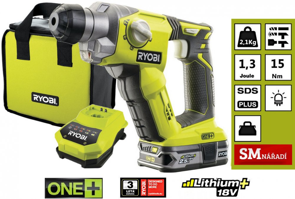 Ryobi R18SDS-L25S aku 18 V SDS-Plus kombi kladivo + baterie 2,5 Ah + nabíječka ONE+