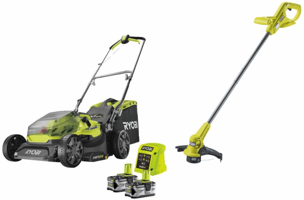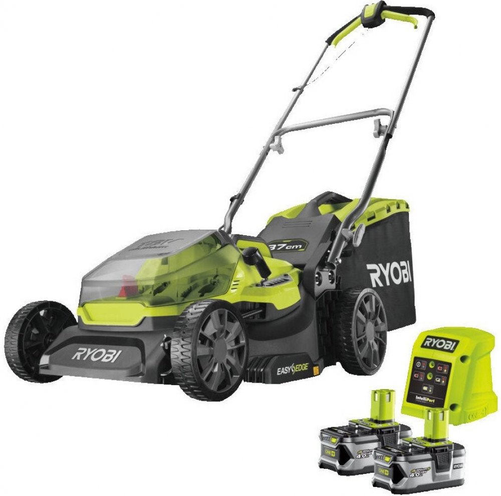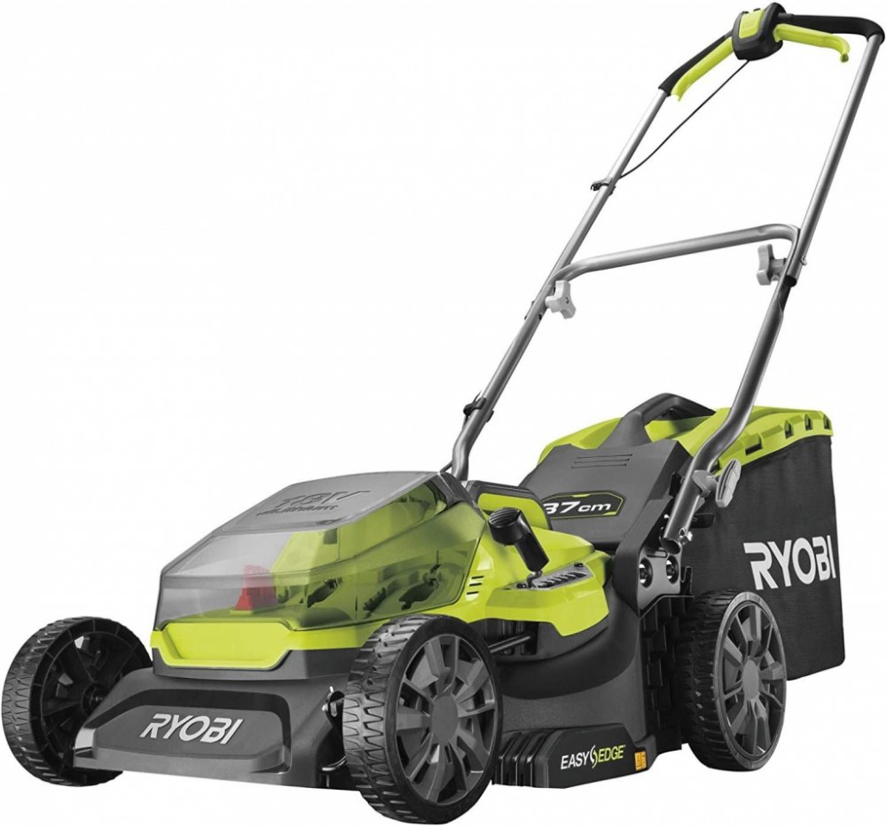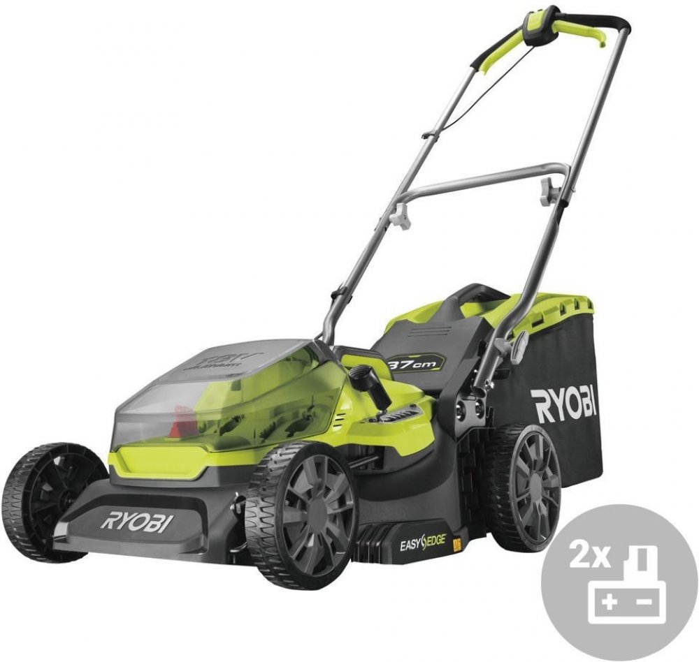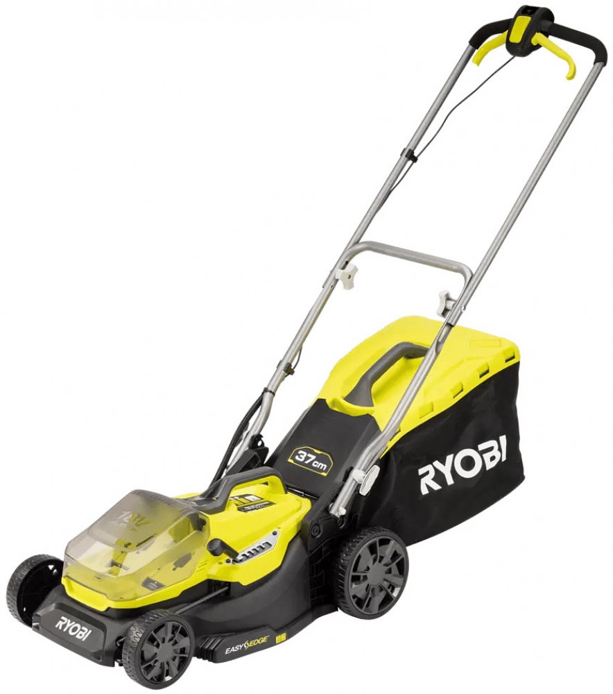 Ryobi 37 cm 94.1 dB plastové 11 kg bez pojezdu akumulátorové rotační 45 l 699 m2 18 V 4 Ah elektromotor 75 mm 1 s plastovo-látkovým košem
