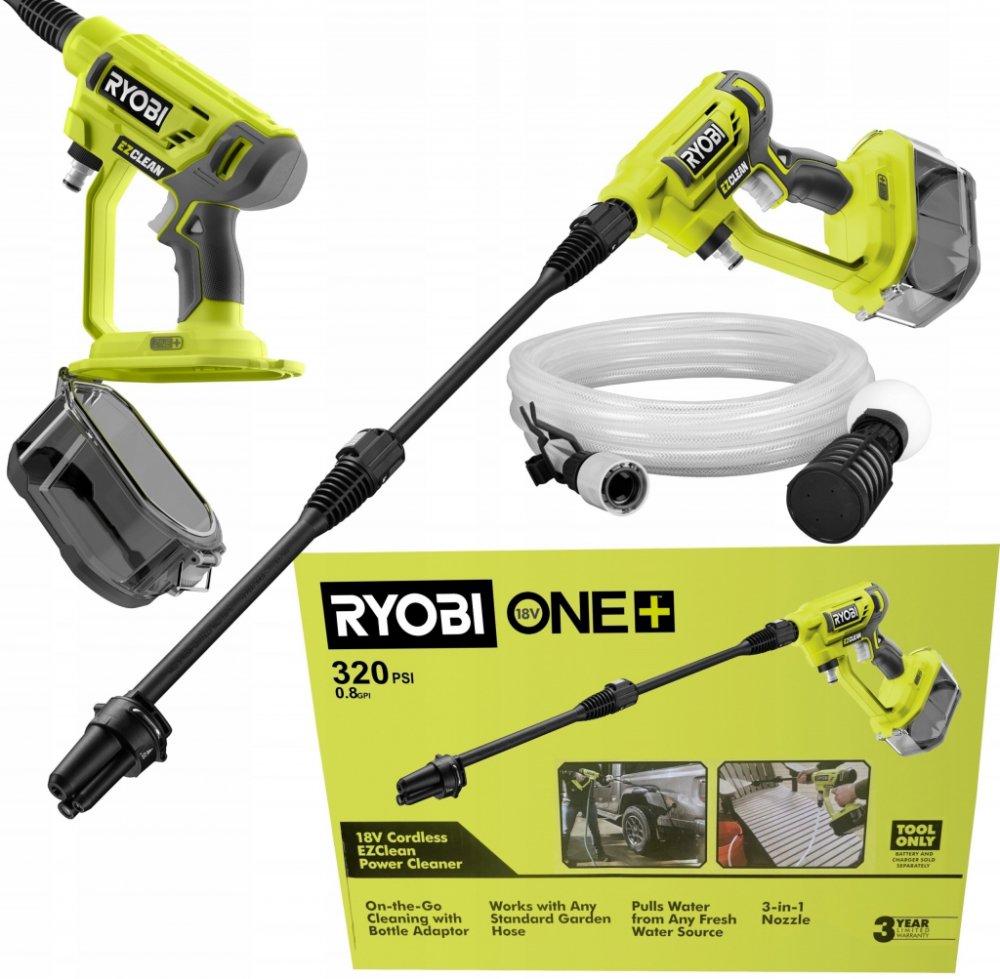 Dodávka RYOBI RY18PW22A-0 ONE+ je bez akumulátoru a nabíječky.