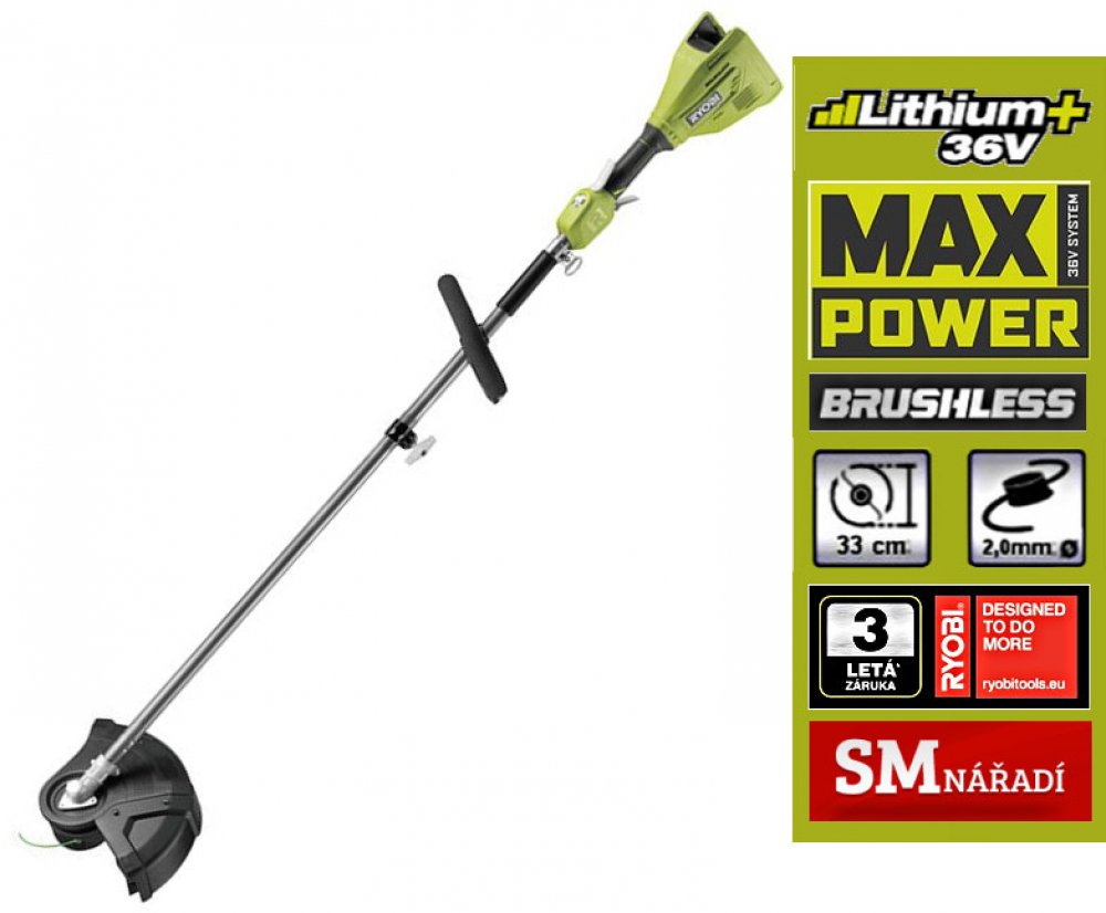 Ryobi 33 cm 4.7 kg křovinořezy akumulátorové madla 5300 ot/min elektromotor 36 V bez aku
