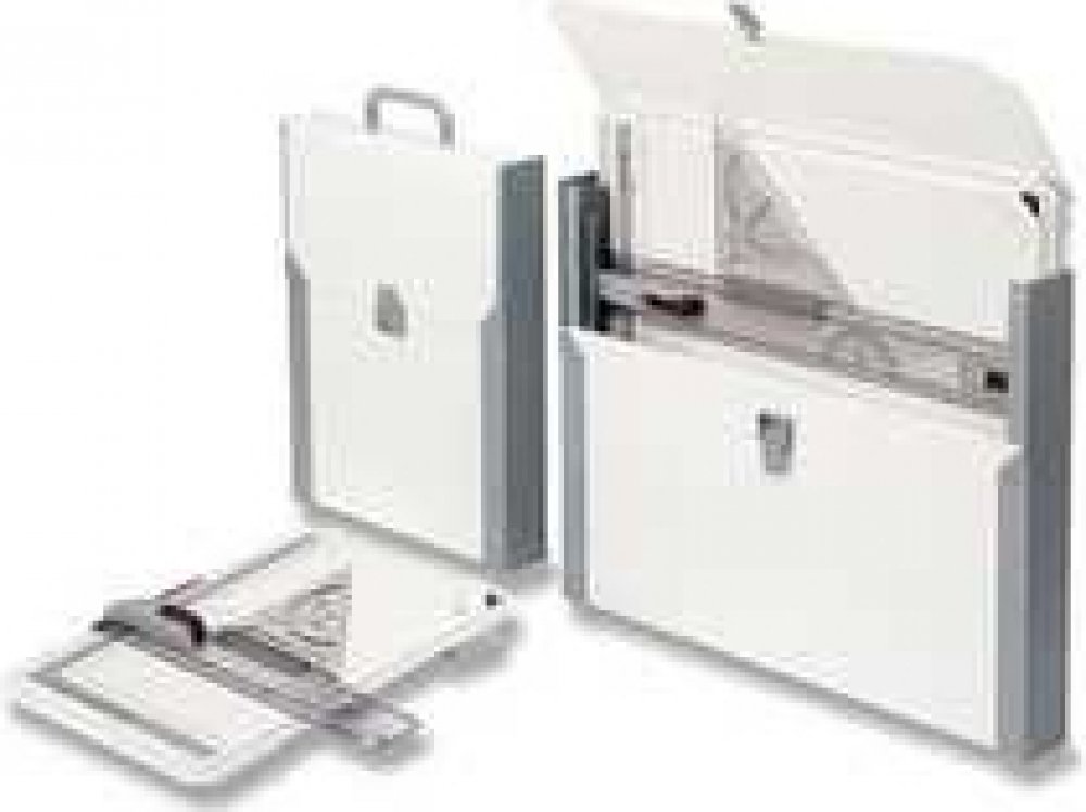 Plně vybavená rýsovací deska velikosti A3 pro rychlou, přesnou a snadnou práci a kufřík pro její bezpečné uložení.