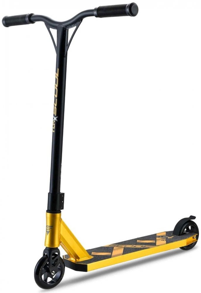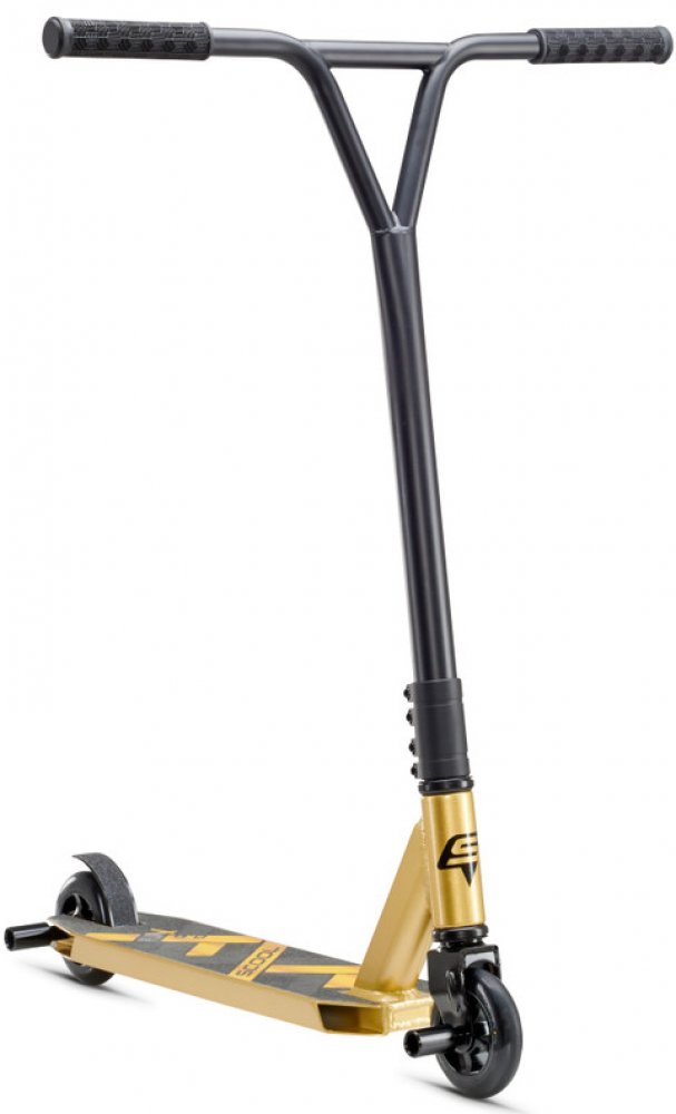 Robustní konstrukce koloběžky typu Flax 8.6 v zářivém provedení “metalický modré” nebo “metalické zlaté” je masivnější alternativou koloběžky.