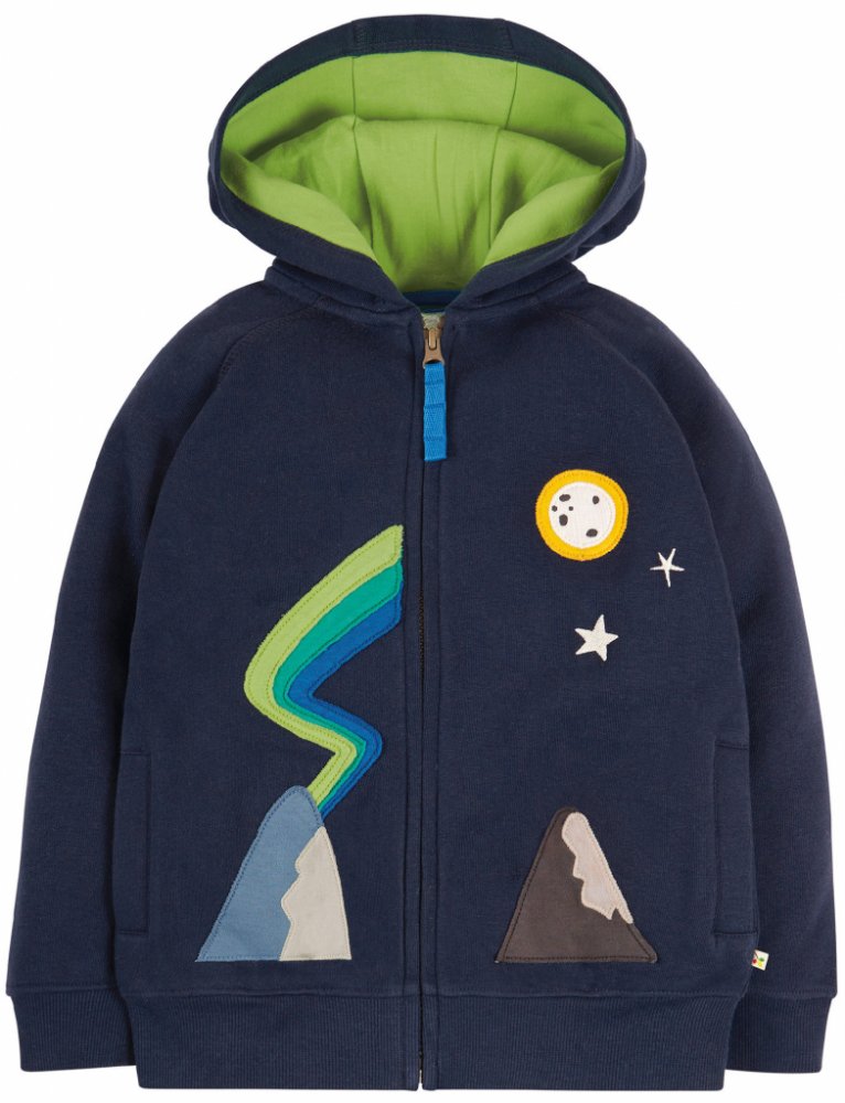 Dětská mikina s kapucí Hory a noční obloha je ušitá z biobavlny, která je: