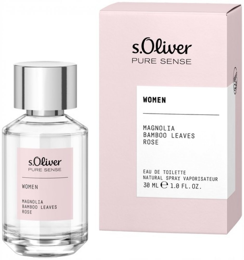 s.Oliver 30 ml dámské toaletní vody květinové pro denní nošení s celodenní výdrží (4-8h) čisté a minimalistické Pure Sense 2021 mainstreamové ananás, bergamot, citrón bambusové listy, magnolie, růže ambrox, naplavené dřevo, pižmo se střední projekcí jarní univerzální s bergamotem, s ananasem, s magnolií, s pižmem Maurer & Wirtz klasické TSA kompatibilní (≤100ml) rozprašovač 140 g standardní