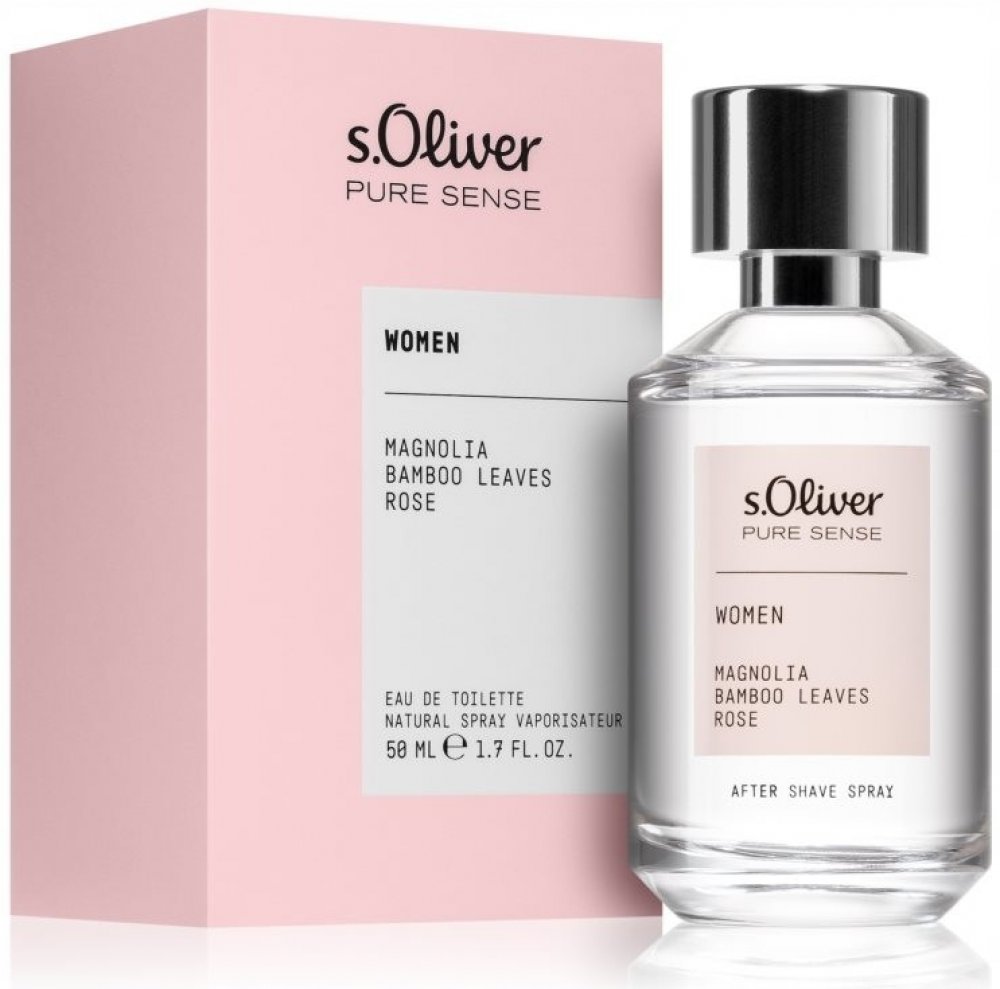 s.Oliver 50 ml dámské toaletní vody květinové s celodenní výdrží (4-8h) čisté a minimalistické Pure Sense 2021 mainstreamové ananas, bergamot, citron bambusový list, magnolie, růže ambroxan, mořské dřevo, pižmo jarní s bergamotem, s magnolií, s pižmem s.Oliver klasické TSA kompatibilní (≤100ml) rozprašovač 150 g