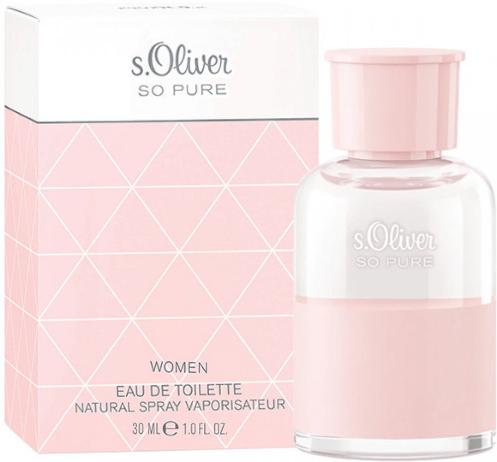 s.Oliver 30 ml dámské toaletní vody květinové pro denní nošení s celodenní výdrží (4-8h) svěží a energické So Pure 2017 z Německa mainstreamové citrusy, jablko, zelený břečťan květiny ambrox, dřevité tóny s jemnou projekcí letní kompatibilní s ambroxem, s jablkem, s kašmírovým dřevem Mäurer & Wirtz klasické TSA kompatibilní (≤100ml) rozprašovač 170 g obsahuje známé alergeny Citral, Geraniol, Limonene, Linalool