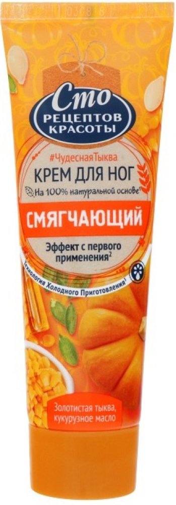 Dýňové oleje v kompozici přispívají k intenzivní výživě a hydrataci, jemně čistí pokožku od mrtvých buněk. Krém na nohy s unikátním složením se podílí na přirozené syntéze kolagenu, který je nezbytný pro pevnost a pružnost povrchu chodidel. Olej získaný z dýňové dužiny pokožku zklidňuje, účinně a pečlivě ji chrání před podrážděním a zánětem. Pravidelná péče o nohy pomocí krému pomáhá předcházet otlakům a žilkám. Výrobek nevyvolává alergické reakce. Krém také obsahuje kukuřičný olej, který obnovuje ochranné funkce pokožky, intenzivně vyživuje, zjemňuje a zvlhčuje povrch chodidel a podpatků. Složka je také zodpovědná za účinné obohacení buněk o užitečné stopové prvky a vitamíny a zároveň pomáhá eliminovat zápach potu.