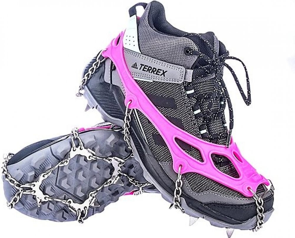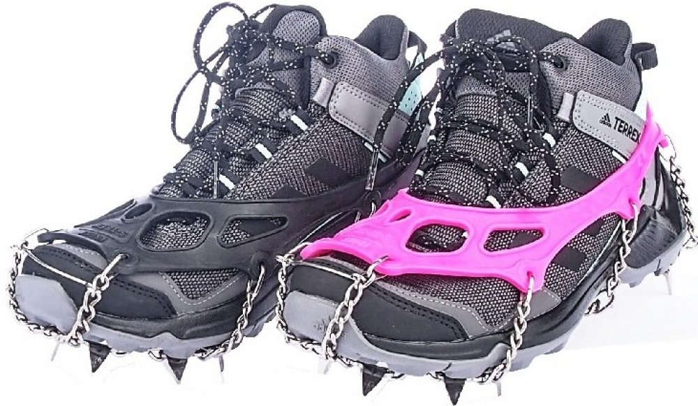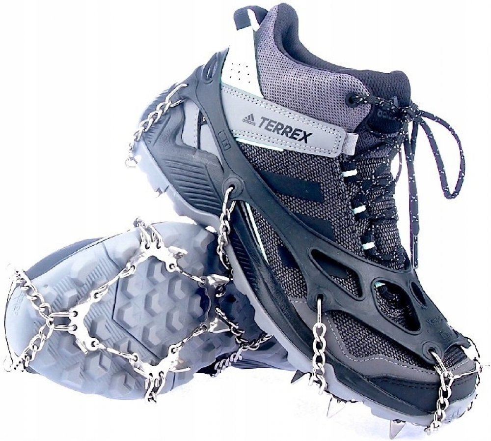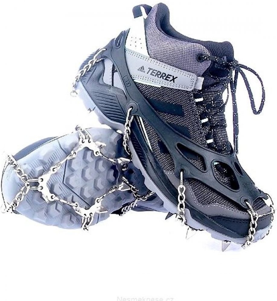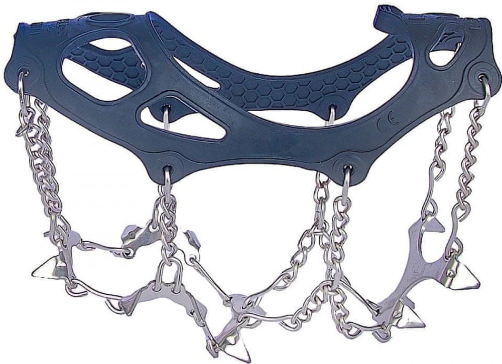 Vysoce elastická guma a 12-ti milimetrové, hroty jsou z manganová ocel se zvýšení pevnosti, řetěz je z pevnostní nerezavějící ocel. 6 hrotů je pod přední, 2 pod zadní části boty pro jistý pohyb jak do kopce, tak z kopce. Určené pro chůzi nebo běh po namrzlém či ledovém terénu.