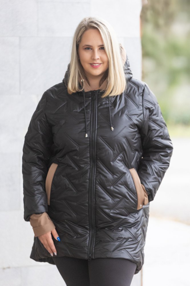 Dámská prošívaná bunda NANCY má délku do půli stehen a vypadá velice stylově. Bunda tě krásně zahřeje v chladnějším počasí a je doladěná manžetami z hebkého a velice příjemného materiálu. Zalíbí se ti určitě i kapuce, která je také lemována látkou a stejně tak kapsy. Kapsy se u bundy nachází po bocích. Krásný efekt vytváří i delší zadní díl. Tento podzimní kousek máme dostupný od velikosti 46 až d...