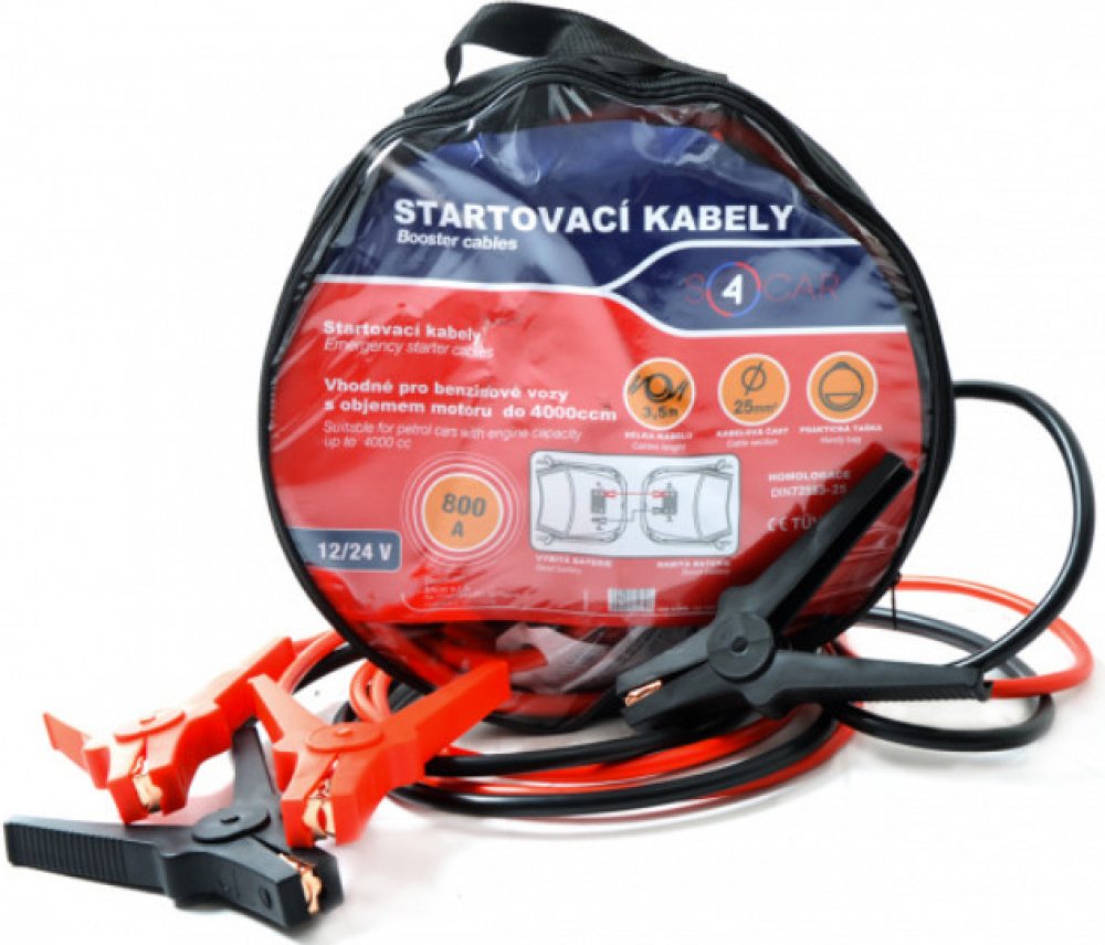 Startovací kabely jsou vhodné pro osobní vozy s benzinovými i dieselovými motory s objemem motoru do 5000 cm³.