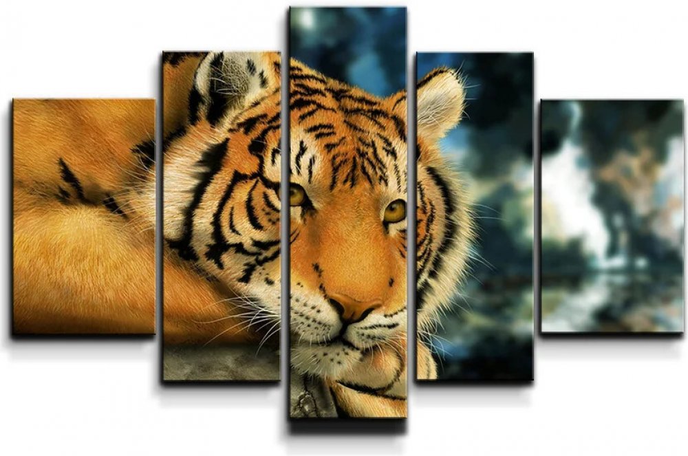 Sablio Obraz - 5-dílný Tygr - 125x90 cm