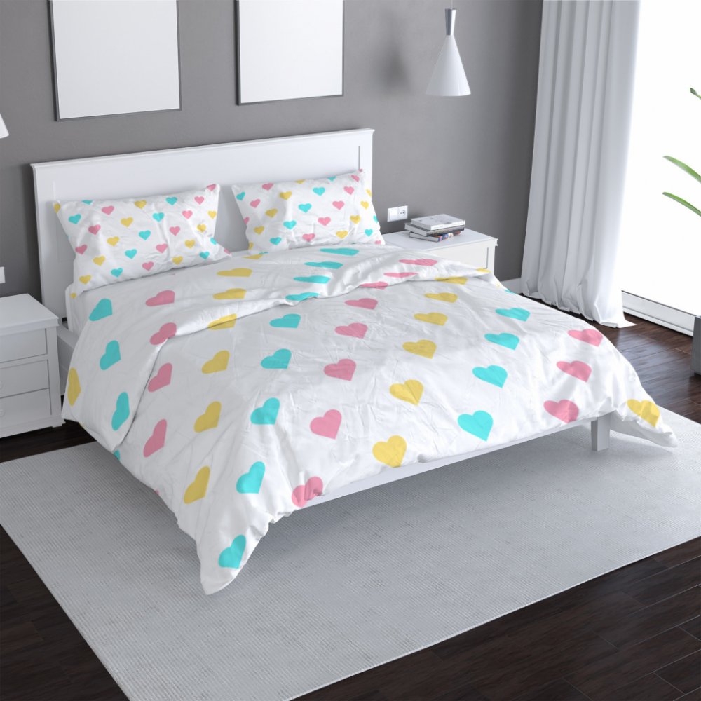 Sablio Povlečení Tříbarevná Srdíčka 140x200 70x90