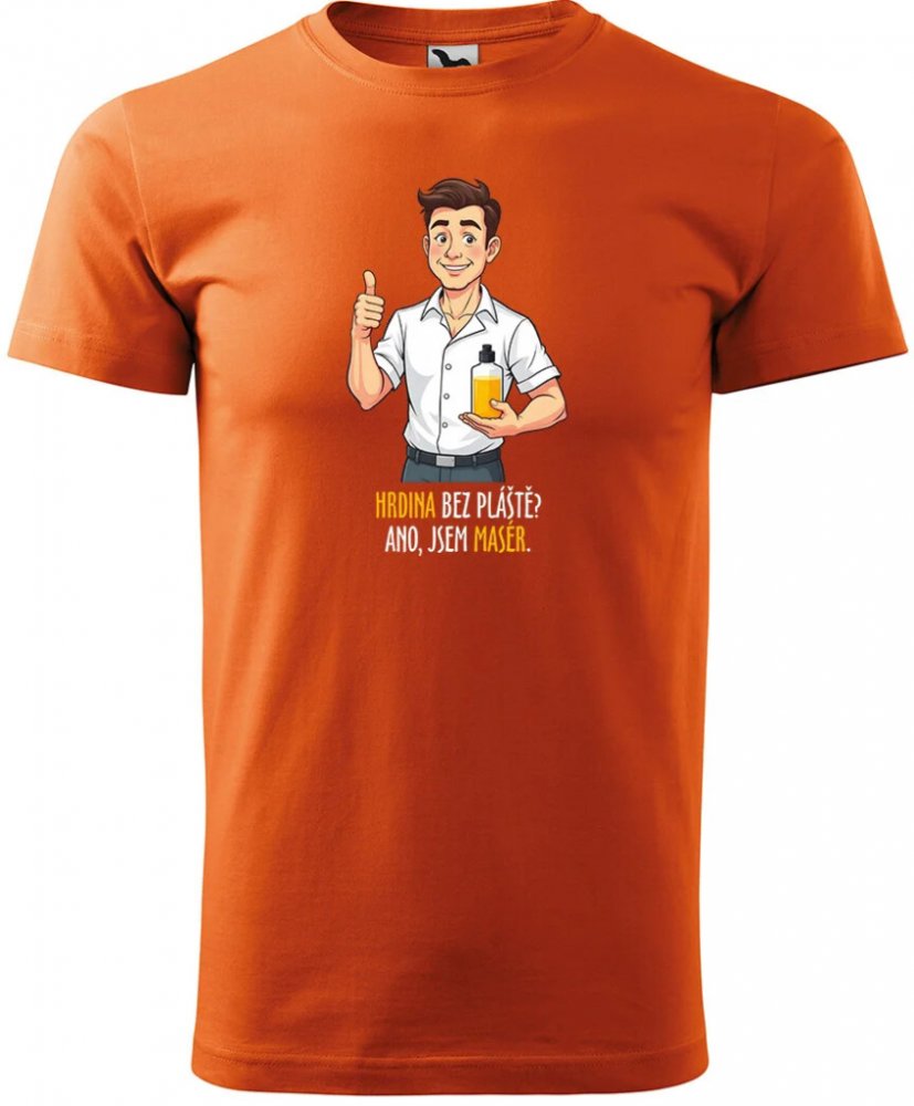 Sablio Tričko s potiskem Hrdina bez pláště? Ano, jsem masér oranžové