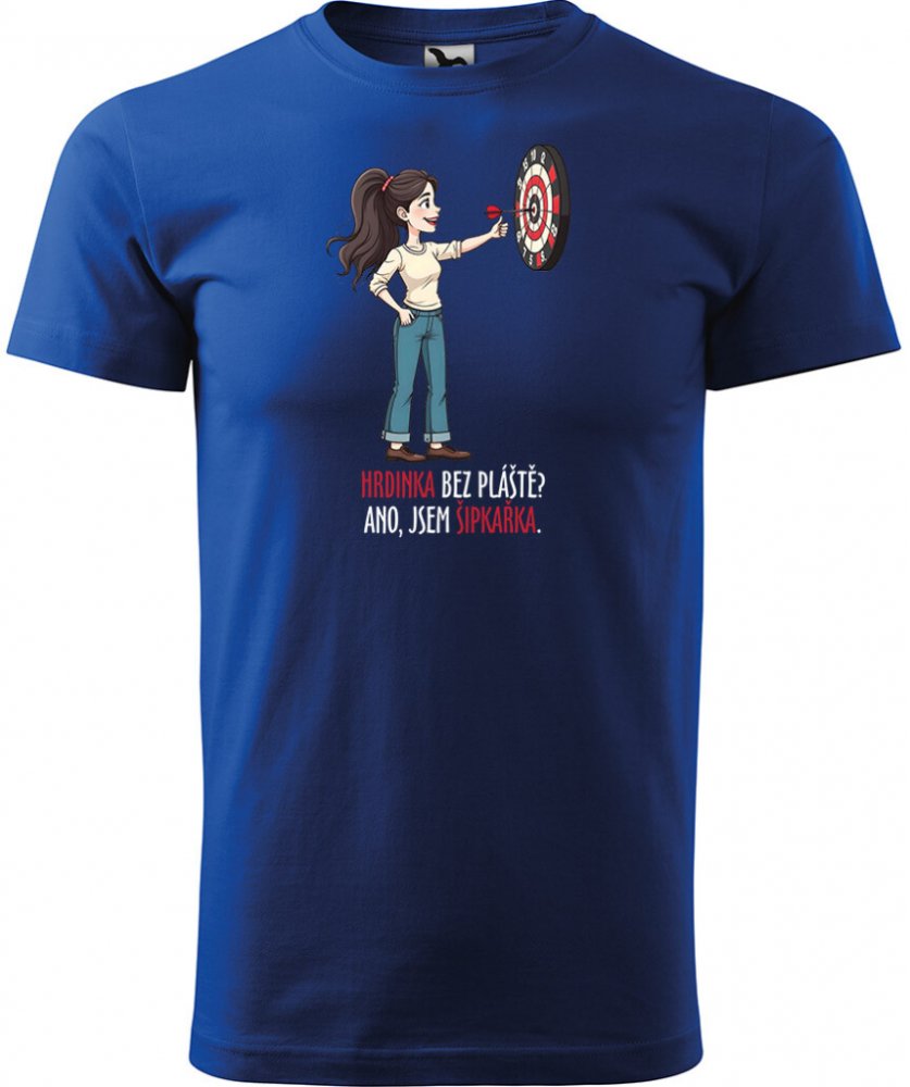 Sablio Tričko s potiskem Hrdinka bez pláště? Ano, jsem šipkařka modré