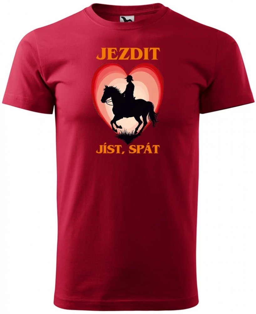 Sablio Tričko s potiskem Jezdit, jíst, spát červené
