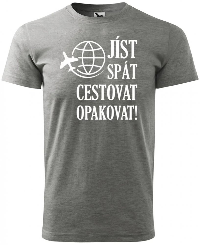Sablio Tričko s potiskem Jíst, spát, cestovat šedé