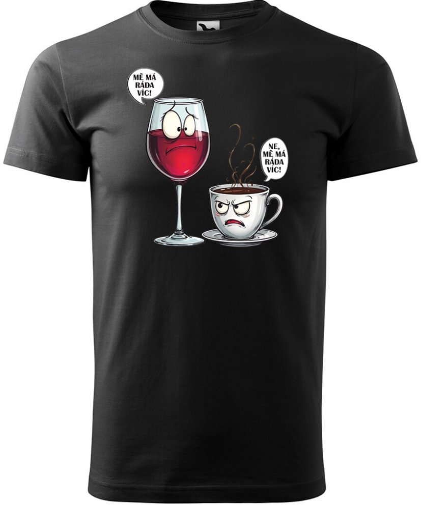 Sablio Tričko s potiskem Mě má ráda víc víno vs. káva černé
