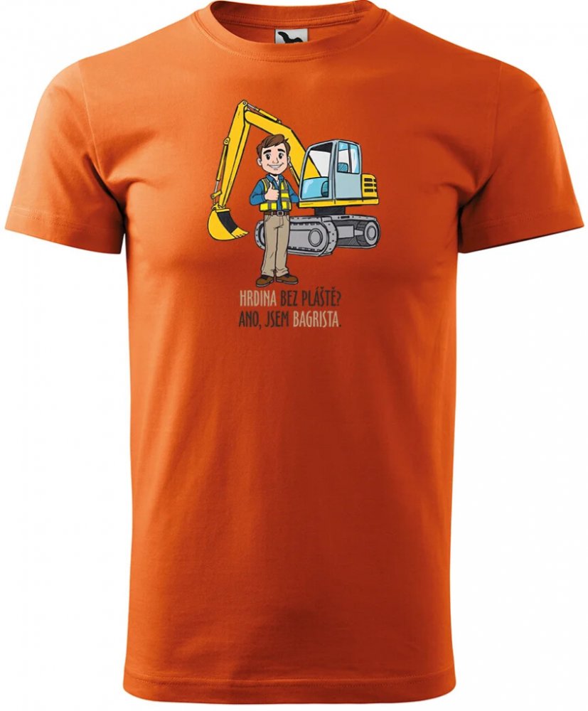 Sablio Tričko s potiskem pro bagristu Hrdina bez pláště? Ano, jsem bagrista oranžové