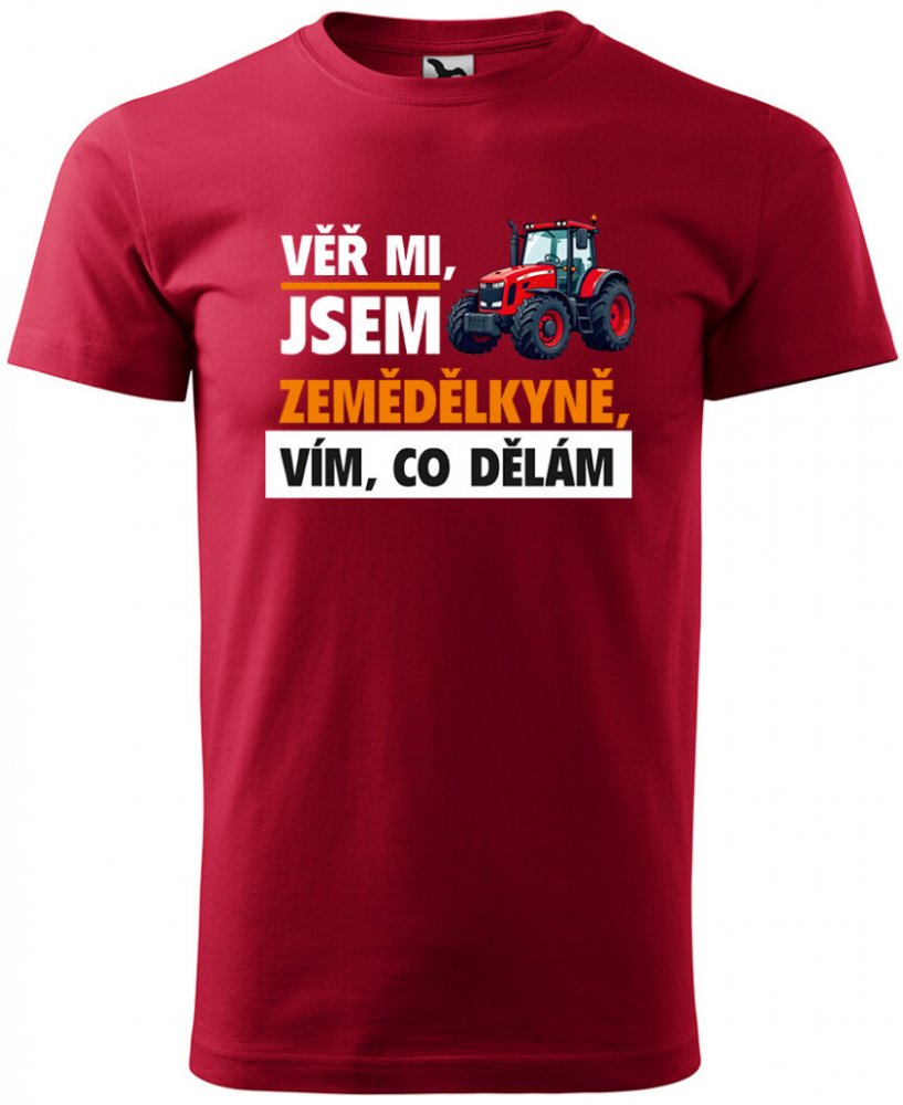 Sablio Tričko s potiskem Věř mi, jsem zemědělkyně červené