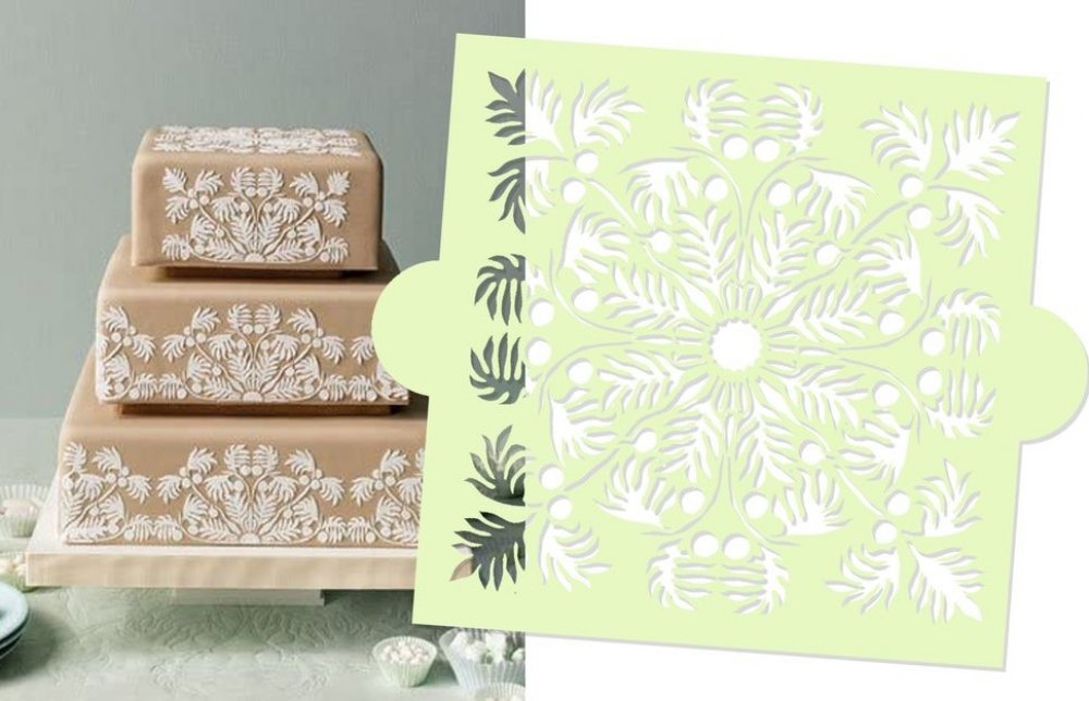 Flexibilní šablona z pružného plastu sloužící k decentnímu a přitom rychlému zdobení moučníků. Používá se jak královská glazura, pudrová barva nebo i perleťové barvy. Při dekoraci na potažené moučníky modelovací hmotou musíme aplikovat na zaschlý povrch aby nedocházelo ke sjíždění  vzoru nebo deformaci moučníku.Šablona se napne pomocí pružné gumy (není součástí šablon) a v tenké vrstvě nanesete hmotu.