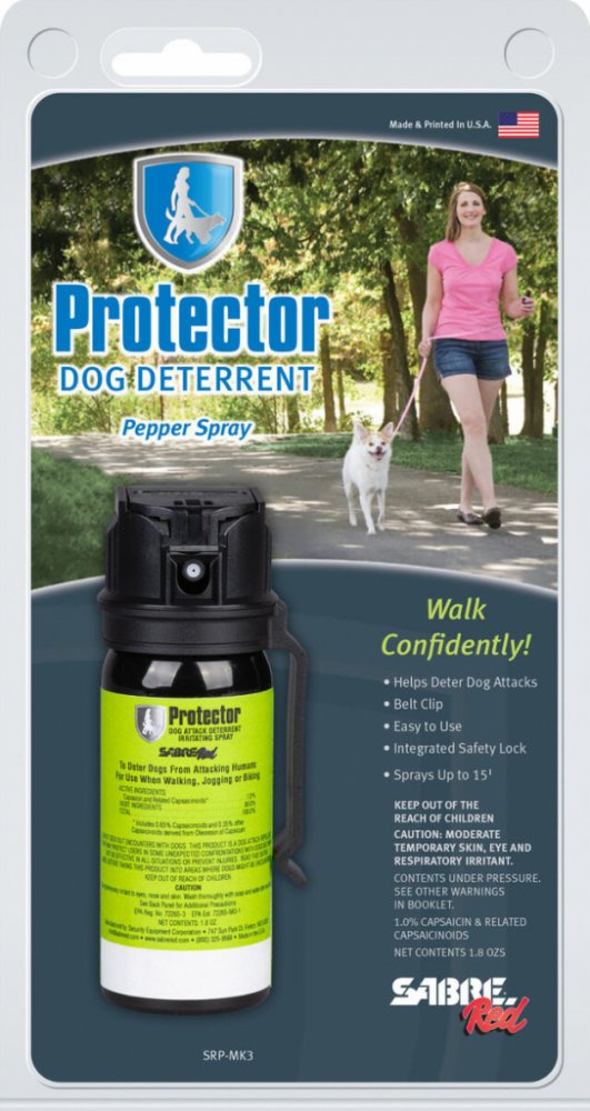 Protector Dog Spray MK-3 od americké společnosti Sabre Red je velice účinný obranný sprej proti agresivním psům. Je určen zejména pro pohyb venku. Slouží k odrazení psa od útoku. Je ideální na procházky (včetně těch s vlastním psem), běhání, cyklistiku a podobně.