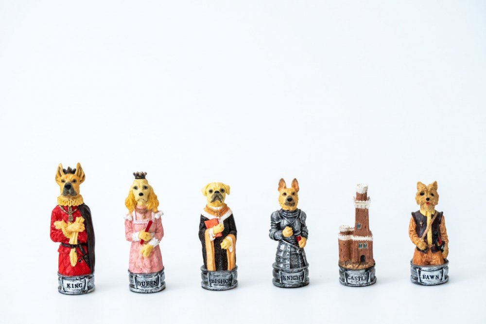 Figurky Kočky a psy jsou hravé, originální a ideální jako dar pro milovníky zvířat. Kombinují svět šachu s roztomilostí a kreativním zpracováním, které okamžitě zaujme.