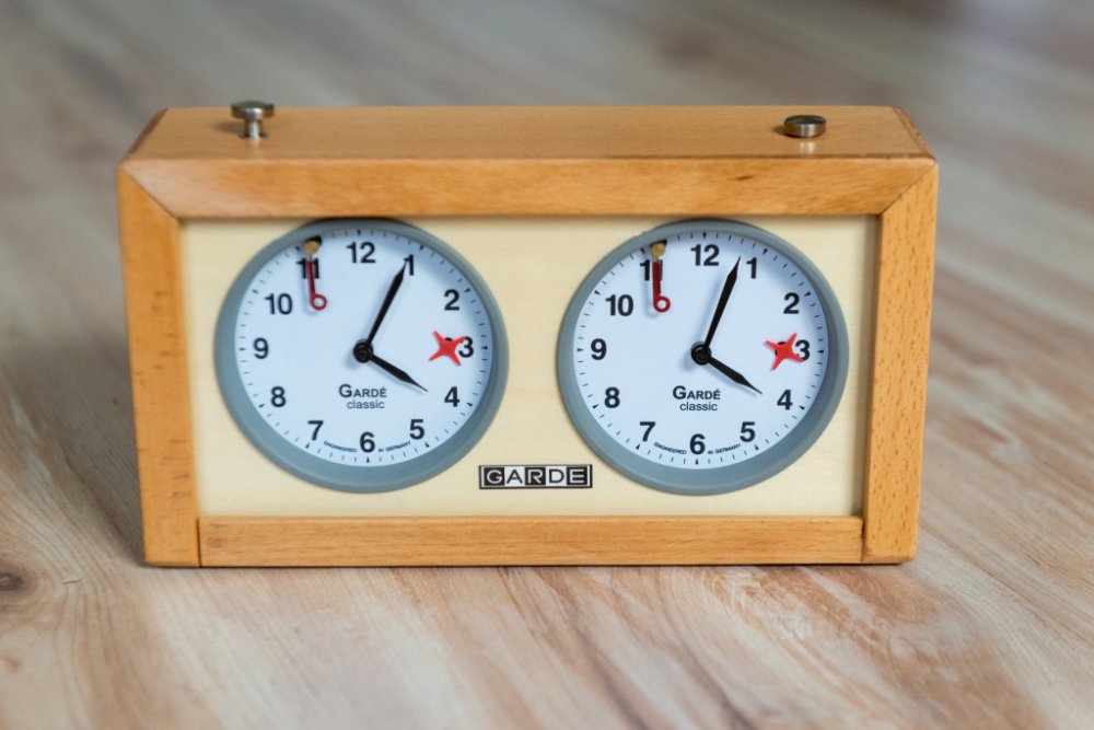 Knoflíky pro hráče a kolečka pro nastavení času na zadní straně: kov