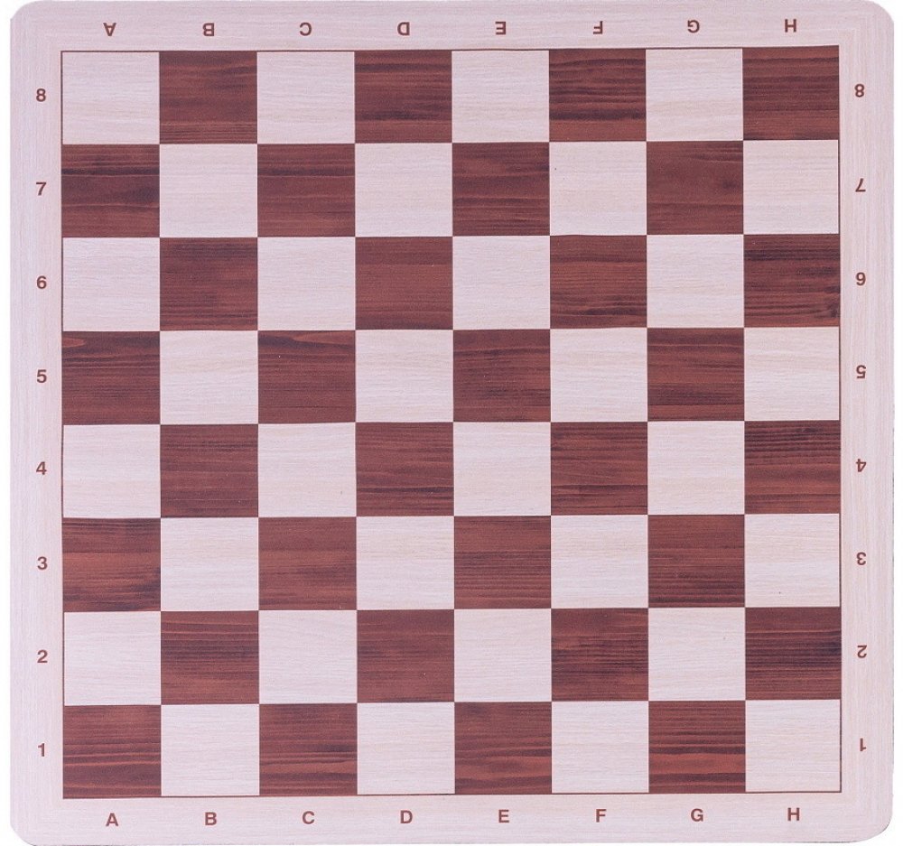 Flexibilní šachovnice z materiálu typu mouse pad. Rozměry 52 × 52 cm, velikost pole 5,5 × 5,5 cm. Příjemný povrch, rolovatelná, ideální na turnaje i domácí použití.