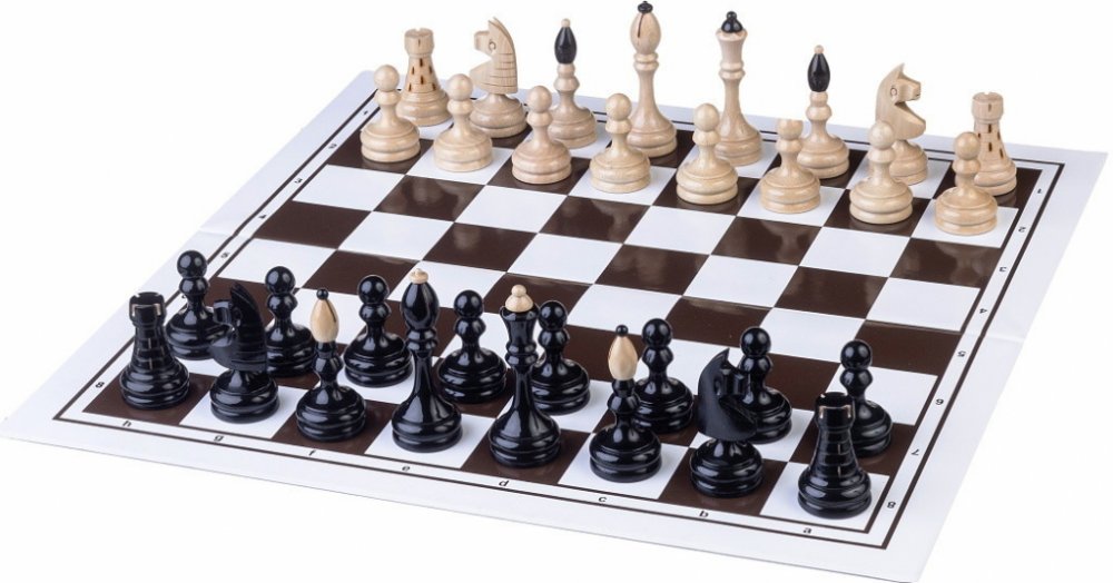 Kvalitní skládací vinylová šachovnice, velikost 52 x 52 cm, s alfanumerickým značením. Výška krále 10,5 cm. Klasický styl šachových figurek v designu česká klubovka original. Převážně se využívají v šachových klubech.