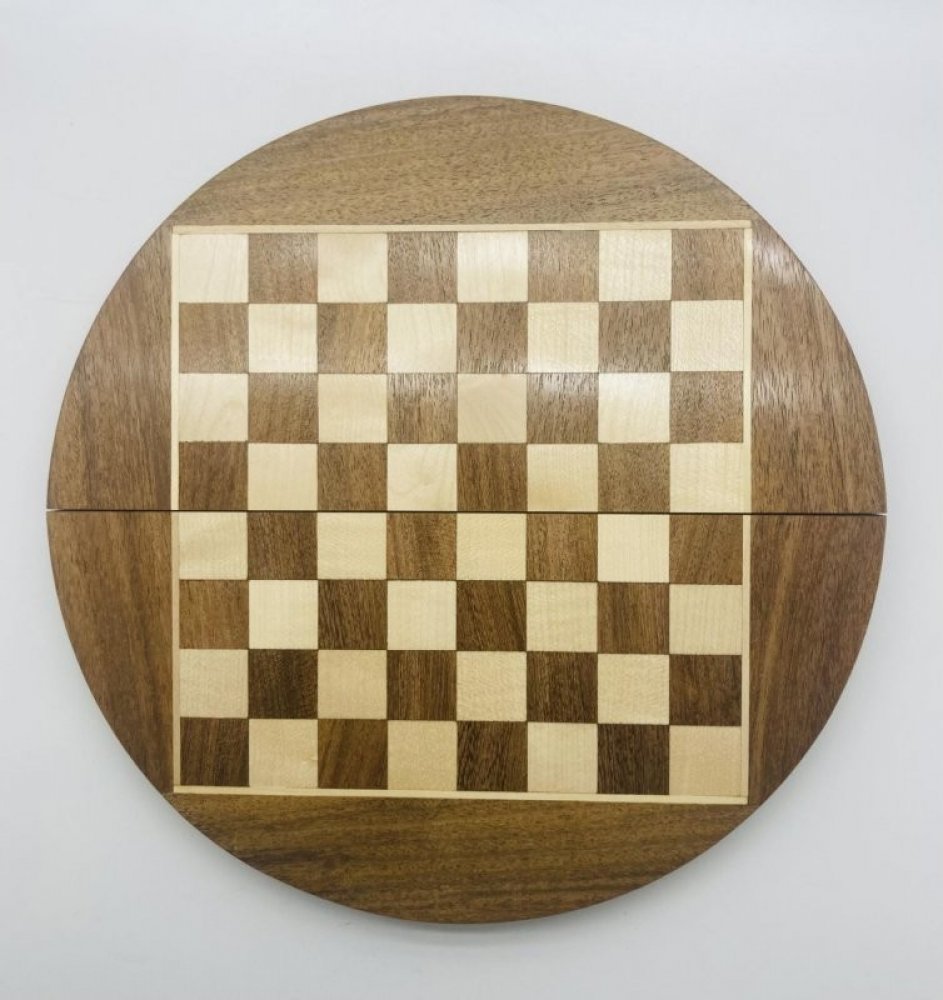 Šachy hra králů.  Material tropické dřevo Vyrobeno v Indii Políčko 19,8 mm Šachovnice 16x16 cm Velikost krále :  3 cm Figurky napevno uloženy   Průměr 23,5 cm