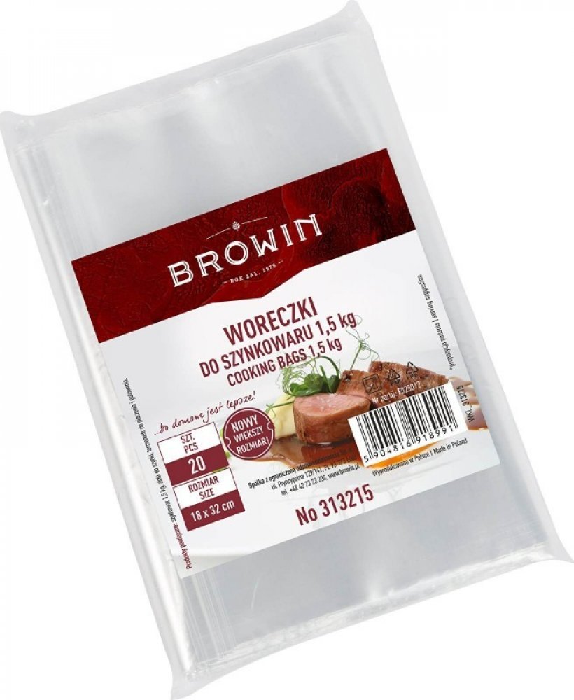 Sada 20 pevných, potravinově bezpečných sáčků z průhledné fólie. Sáčky o rozměrech 16 cm x 32 cm se perfektně hodí do nerezového šunkovaru s kapacitou 1,5 kg. Díky nim můžete nejen jednoduchým a rychlým způsobem vložit a vyndat várku z komory šunkovaru, ale také udržovat zařízení bezvadně čisté.